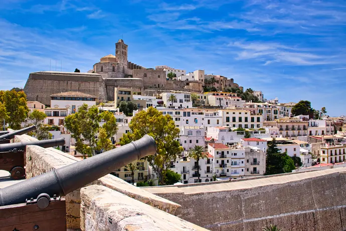 Ibizas Altstadt Dalt Vila, die hoch über dem Hafen thront, gehört zu den eindrucksvollsten Orten der Insel. Wer durch die mächtigen Stadttore tritt, findet sich in einer verwinkelten Welt aus Kopfsteinpflaster, Bastionen, weißen Fassaden und historischen Mauern wieder. Die Festungsanlage, ein UNESCO-Welterbe, blickt auf eine lange Geschichte zurück – von den Phöniziern bis zur spanischen Krone. Heute lädt Dalt Vila mit kleinen Galerien, ruhigen Innenhöfen, Lokalen und kulturellen Veranstaltungen zum Entdecken ein.